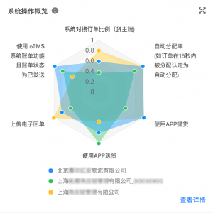 雷达图详细对比展示各承运商oTMS系统使用程度(APP使用率、EPOD回传率等)。
