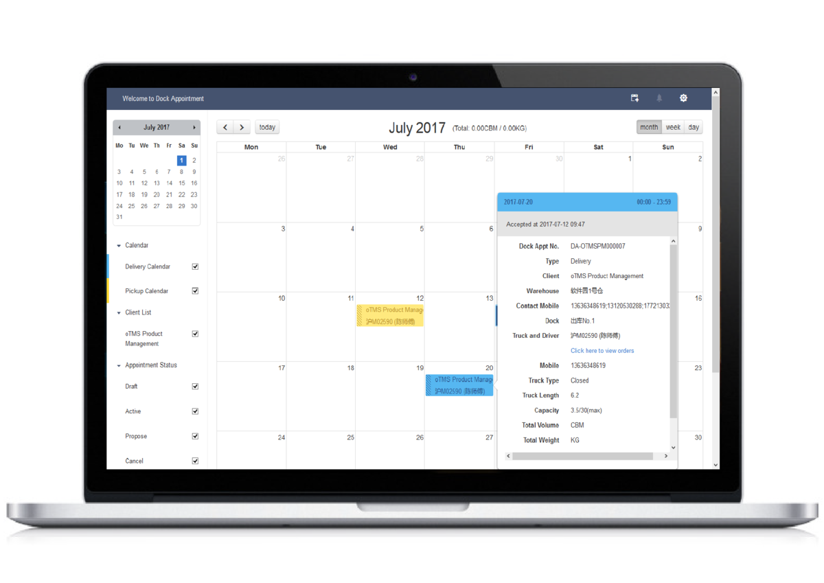 Shipment notification is pushed both to your dock staff desktop or a mobile and driver. They access the same shipment info via HTML page, wechat or oTMS mobile apps.