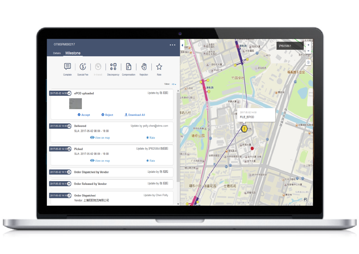 ePOD (electronic Proof of Delivery) is instantly uploaded by either party mobile APP, wechat or by paperless handshake.