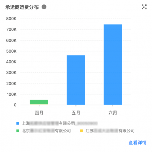 按月细分各承运商物流费(基于系统设置价格的全量订单理论运费),不同颜色代表不同承运商。