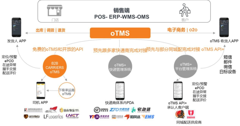 目前oTMS EC平台的全渠道布局业务架构,已获得超过400家企业认可的EC/B2B/O2O/S2S解决方案,为企业全渠道业务扩张,带来巨大的效率提升和运营成本降低的空间。同时拥有的海量运输业务供应商资源,供企业选择,对于意在全渠道业务扩张的企业来说,是拿下物流短板的一大利器。