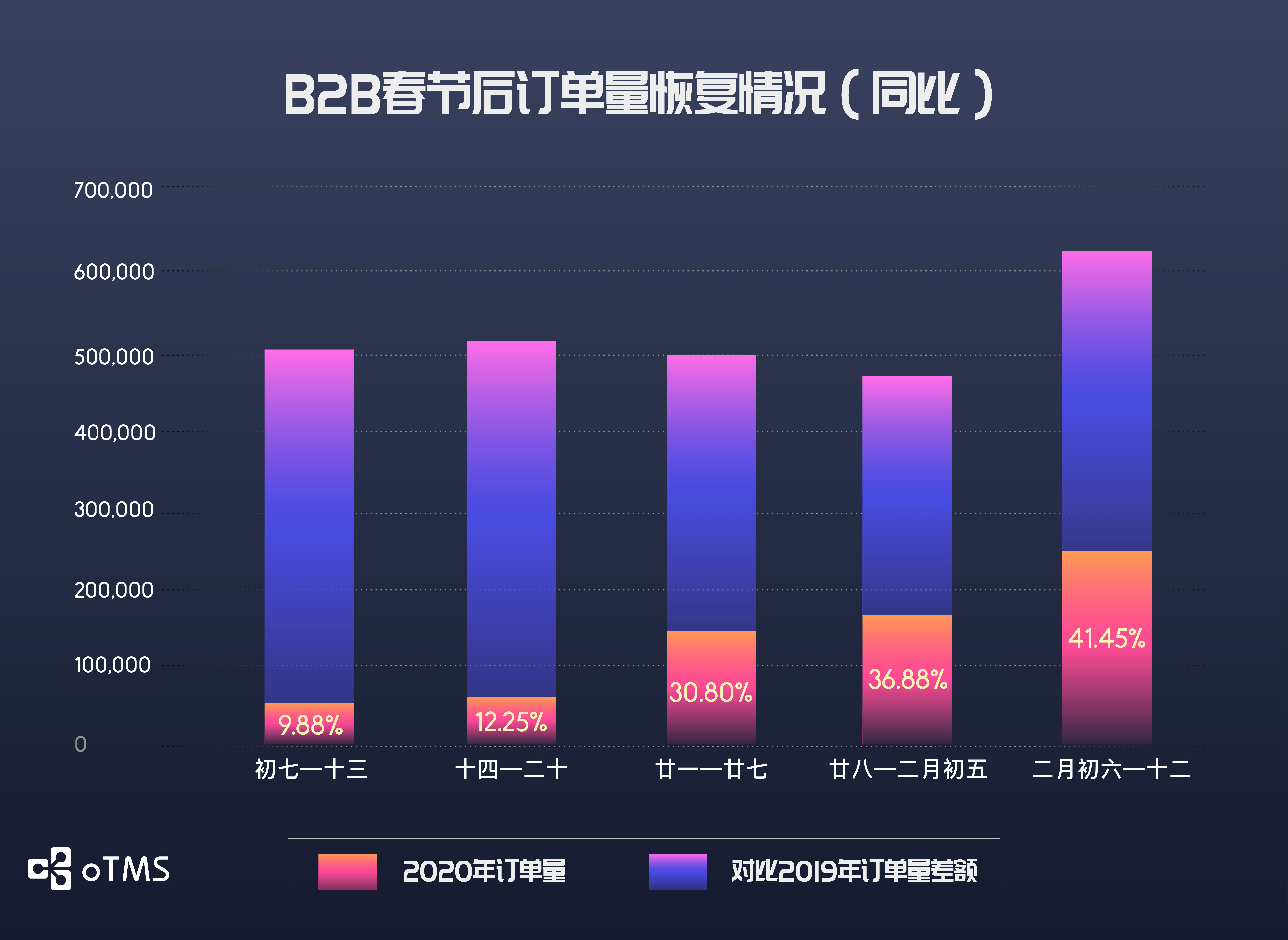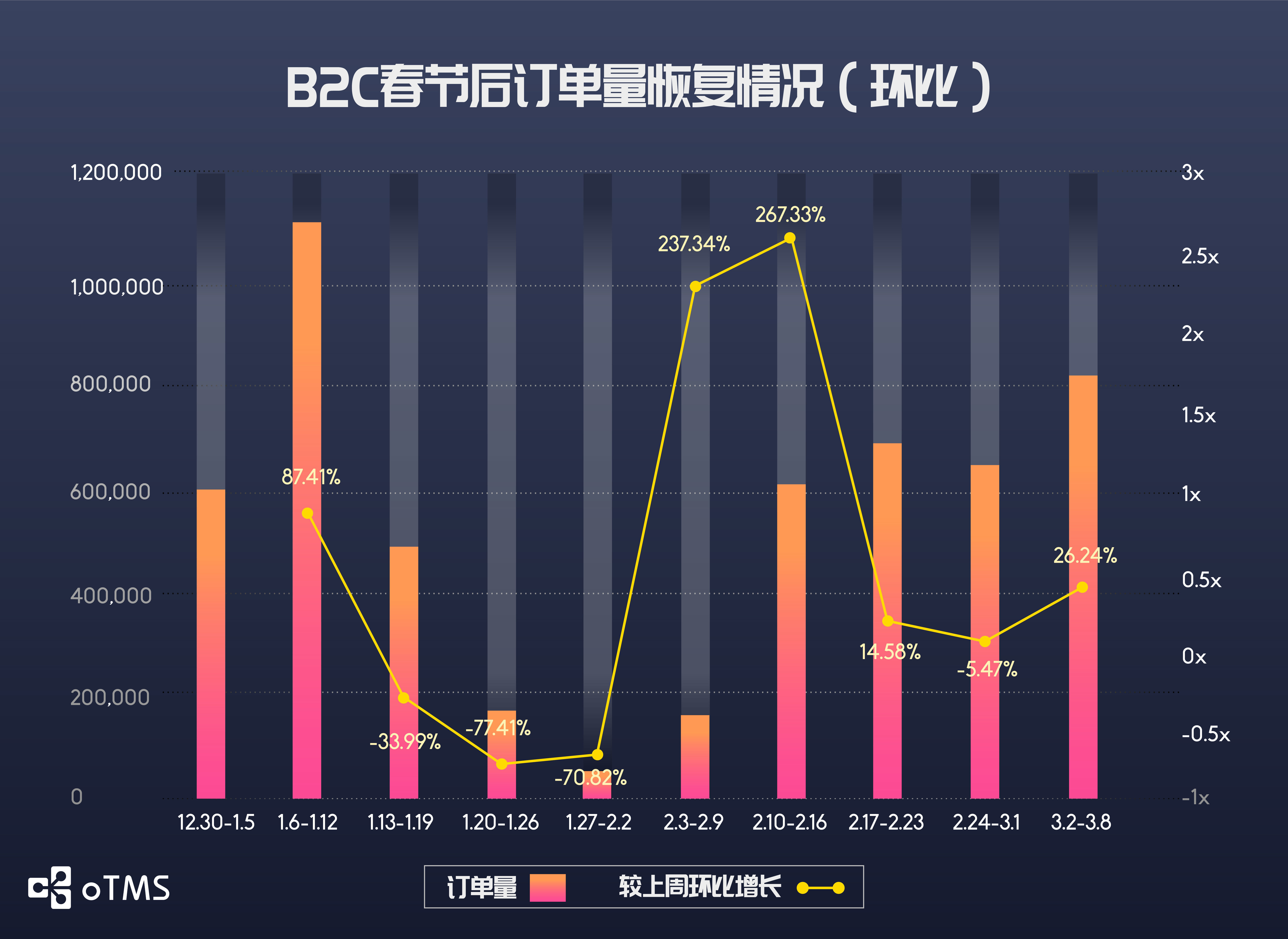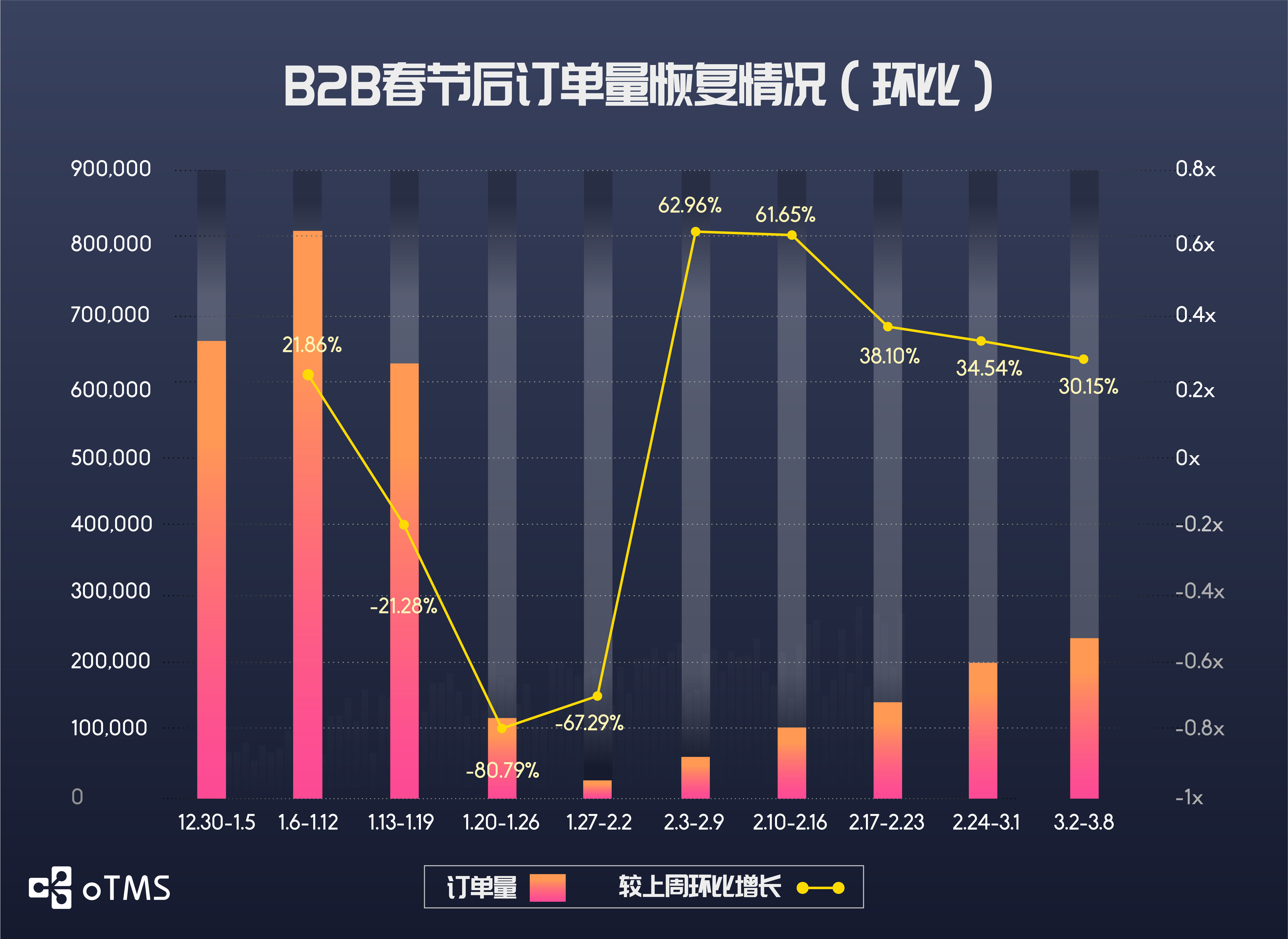 B2B公路运输订单量增长率在过去三周都维持在30%-35%左右,上周订单量恢复至节前高峰的31.50%,何时能完全恢复尚不明朗。