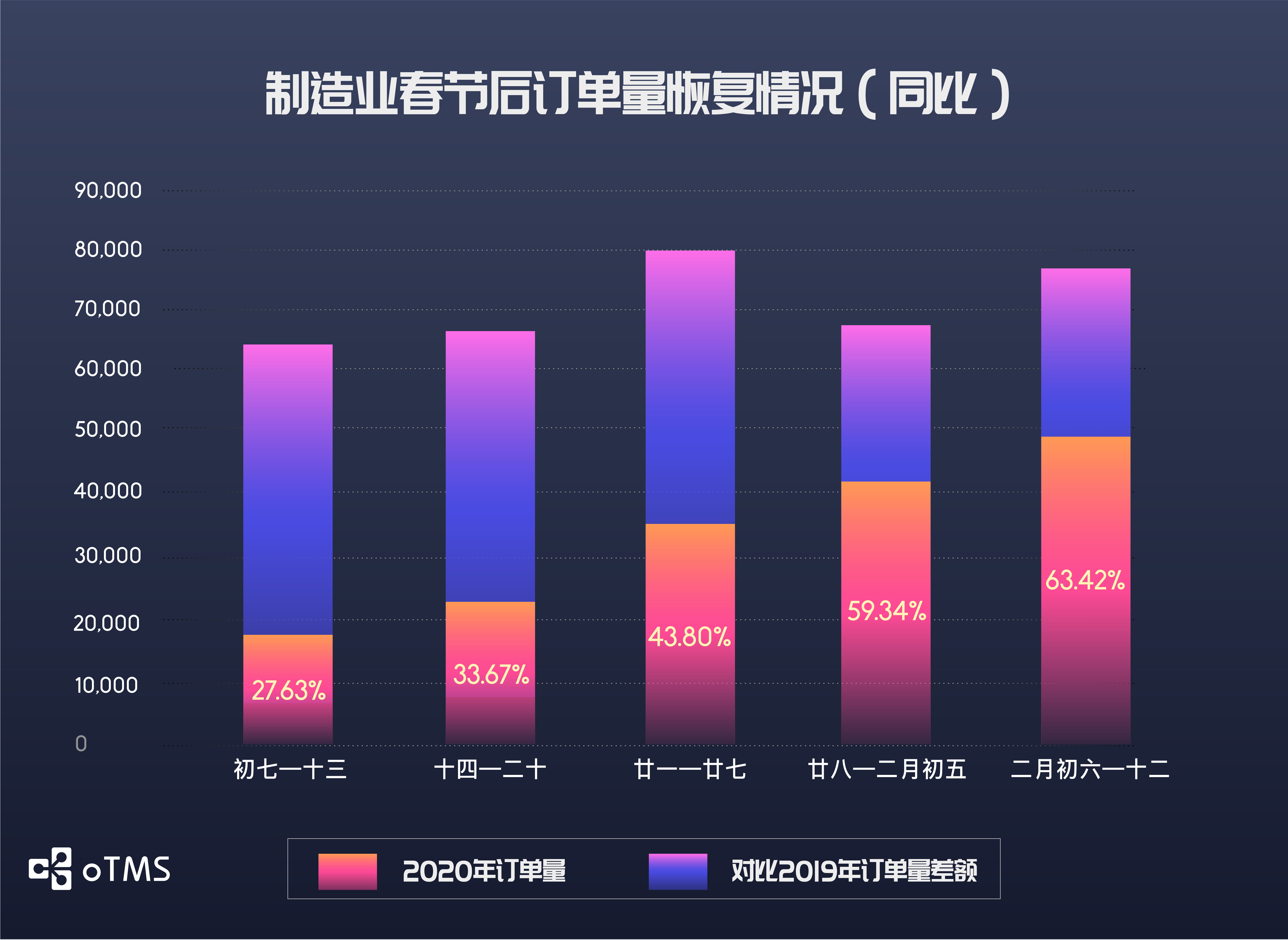 制造业订单量回升平稳,较同期订单恢复量于第四周突破50%,第五周超过60%。
