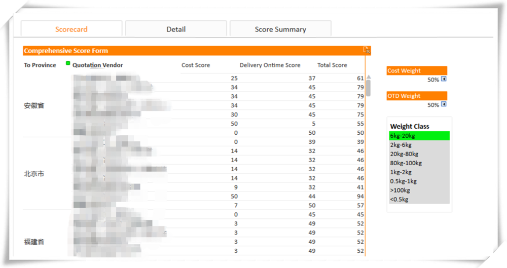综合积分卡是国内常用的软件评标方式,在tms的选型上同样适用。但和其他软件不同的是,基于前文提到的运输管理的特殊性、时代的动态性,都应该体现在积分卡的内容和权重上。前文提到的六项基本因素,再增加价格比重(建议不超过20%),应该就可以形成较为完善的tms选型综合积分卡。