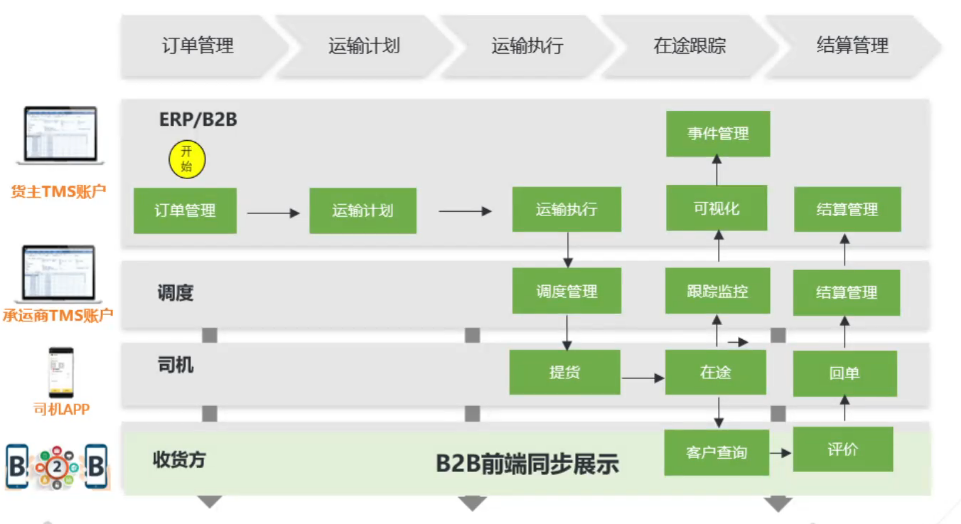 记录运输在途节点信息实现订单运输轨迹的实时可视化;在途事件上报;运输异常及时处理