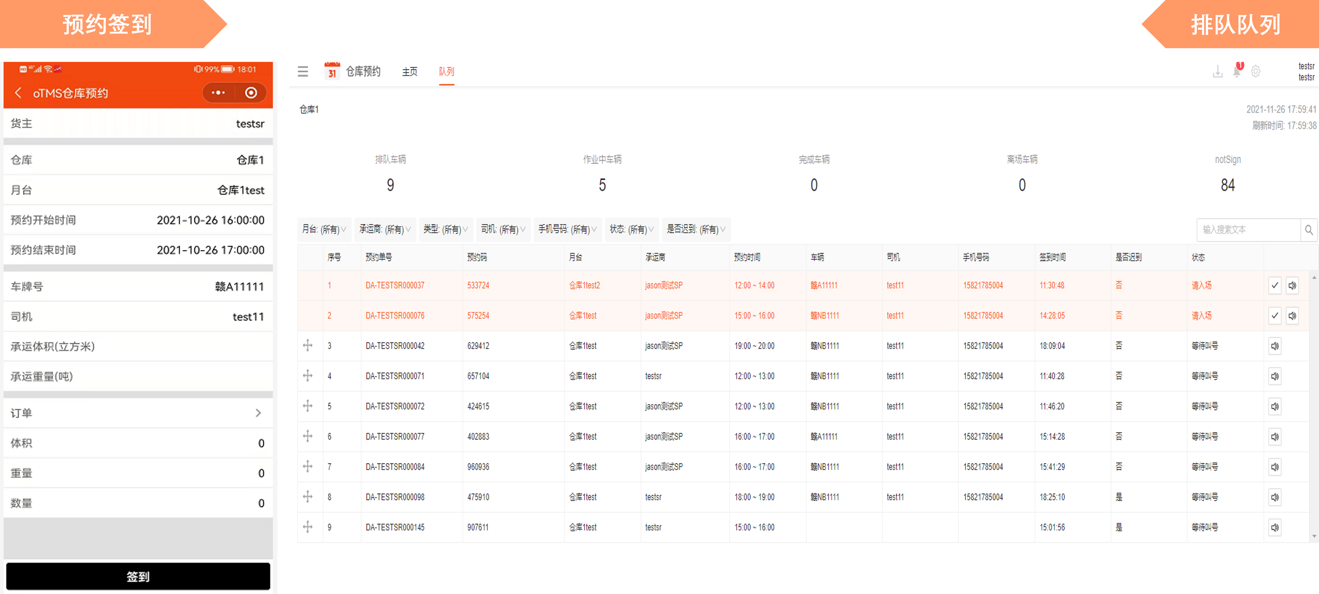 针对上述问题,oTMS仓库预约管理系统通过提前预约、现场叫号、系统对接等方式,有效解决难点痛点,从而提升仓库效率。具体表现为: