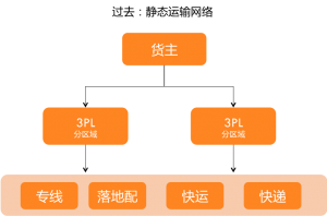 当企业的经营模式是推动式为主,服务对象是经销商体系,订单是低频次、大批量,运输相对而言是比较稳定和简单的,我称之为“静态运输网络”(静态和动态都是相对而言),如下图,按照区域,和少数几家3PL合作,由他们负责所有的其他服务,这种物流模式对应过去的企业经营模式是合理而且经济的。